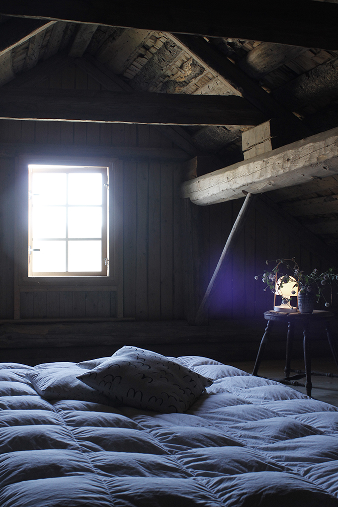 Tuosta työsavotasta takaisin haikeuteen. Vaikkei ihan joka nurkka ullakolta ole valmiina, nukuttiin isomman tytön kanssa tuolla kesäloman viimeinen mökkiyö. Mikä tunnelma olikaan nukahtaa viileään kesäiltaan ja herätä lämpimän untivapeiton alta raikkaaseen auringon nousuun. Kesän paras yö, ehdottomasti.