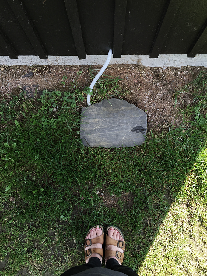 Tähän wishlistiin löytyi vastaus Kekkilän uudesta Kuivikekäymälästä. Tuo käymälä erottelee kuivat ja märät jätökset, kuivat maatuvat kompostin kautta mullaksi, märät johdetaan letkun kautta erilliseen säiliöön pihan puolelle (katso tuo informatiivinen kuva =). Tuo hajujuttu on se kriittisin varmaan jokaiselle, mutta tässä huusseihin perehtyneenä opin, että kysehän on vain millaisen ilmanvaihdon huussille järjestää. Käsitin Kekkilän kanssa jutellessa, ettei asennusohjeissa kannata oikoa – ei ylimääräisiä mutkia putkiin, hyvät ja pitävät liitokset ja tuuletusputki ihan katolle saakka, niin painovoima hoitaa homman. Ja siis uskallan nyt kirjoittaa tämän postauksen, kun itse käymälä on ollut käytössä jo pari kuukautta. Ei dunkkaa, näin se vaan on. Ja meillä siis ne ilmastointiputket koteloitiin tuonne takaseinän taakse, vietiin vesikaton läpi ja katolla nököttää nyt ihan oma vessapiippu.