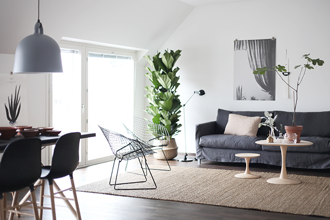 Viime viikko meni kiireisenä Etu-Töölössä. Satolla valmistui juuri uusi Asunto Oy Töölön Estradi, jonne pääsin sisustamaan hulppean kahden kerroksen asunnon. Pohjoisella Rautatiekadulla sijaitsevassa kattohuoneistossa on reilut 140 neliötä: alakerrassa keittiö-ruokailutila ja olohuone sekä kolme makuuhuonetta, joista yhdestä teimme viehättävän pukeutumishuoneen. Niin ja tietenkin sauna ja kylpyhuone. Yläkerrassa on valloittava viistokattoinen ateljeetila, portaikon aulatila ja toinen wc. Sisustettuja huoneita on niin monta, että jaan tämän esittelyn tämän viikon aikana kolmeen osaan. Nyt ensimmäisenä pääsemme kurkistamaan olkkariin, keittiöön ja ruokailutilaan.