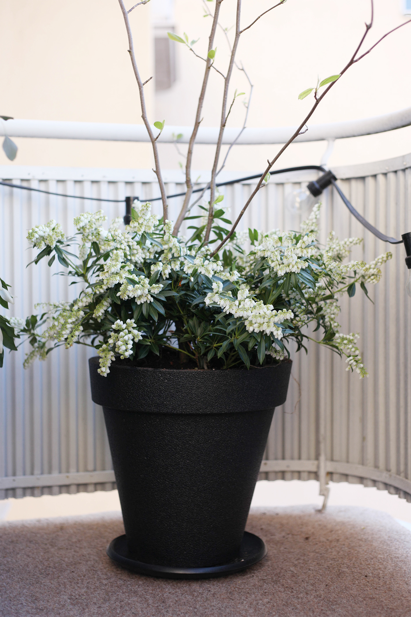 Kiitos Kekkilä supportista parvekkeen kukittamiseen! Ruukkuistutuksissa puina magnolia ja japaninvaahtera, alaosissa peitekasveina vaivero ja keijukukka. Pienessä ruukussa lattialla jouluruusu.