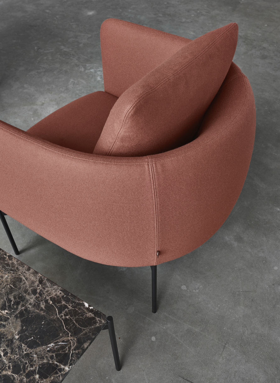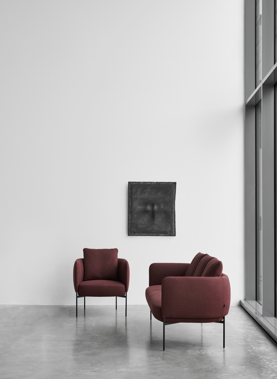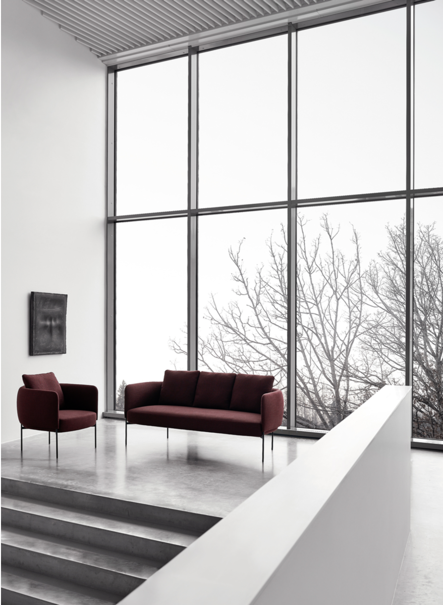 Bonnet-sofa and chair works well in domestic and public spaces // Adea