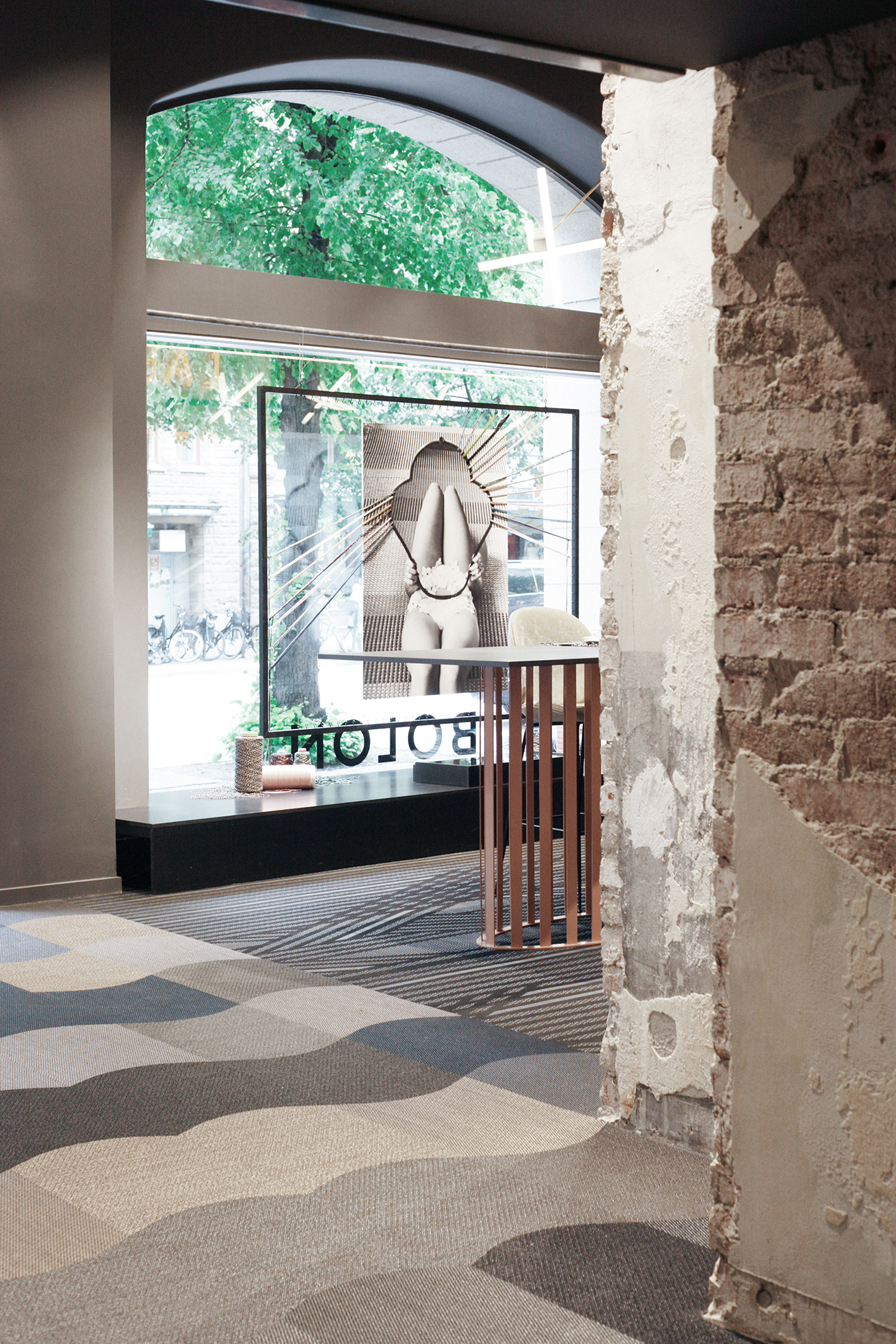 Monelle on varmasti tuttuja Bolonin laadukkaat kokolattiamatot. Meillä Suomessa Bolonin showroom on tuossa Punavuoren sydämessä, Punavuorenkatu 1:ssä. Bolon on ruotsalainen designyritys, jota vetävät sisarukset Annica ja Marie Eklund, jo perheyrityksen kolmannessa polvessa. Vahvasti muotiorjentoituneet sisarukset ovat johtaneet yrityksen uuteen tyylikkääseen ja korkealaatuiseen suuntaan. Hauskinta oli kuulla, että alkuaan Bolonin vinyylimatot oli suunniteltu caravaanareille – nämä asuntovaunujen ulkotiloissa olevat matot olivat myyntihitti vuosikymmeniä sitten. Sisarusten uudistama Bolon on muuttunut näistä vuosista ja matottaa nyt julkitiloja luksushotelleista designtoimistoihin kautta maailman. Bolon tekee vahvasti yhteistyötä nimekkäiden muotitalojen kanssa ja mallistosta löytyykin muun muassa Missonin kanssa tehdyt matot.