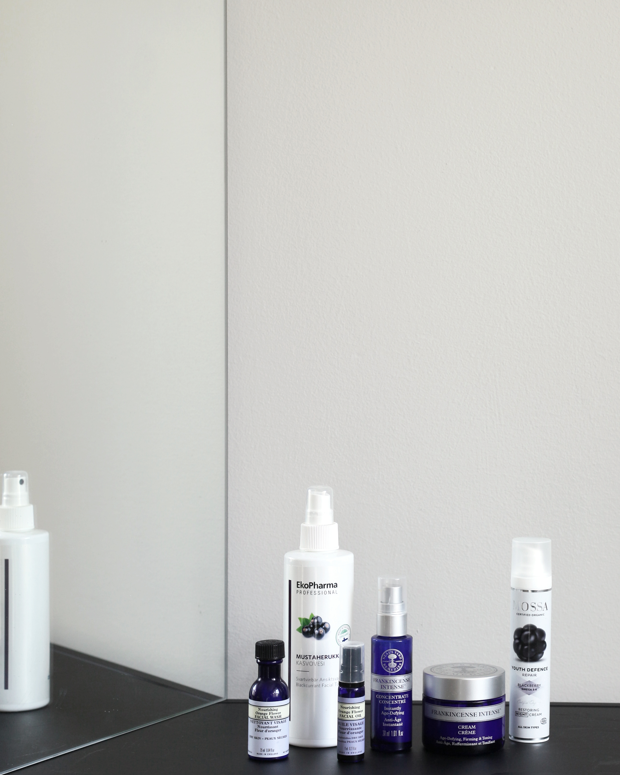 Myönsin tänä keväänä, että koluamani reitti on väärä. Nyt ei auta muu kuin antaa kylppäristä tilaa useammalle purkille. Luonnonkosmetiikan ystävänä käännyin Katja Kokon puoleen ja sainkin napakan ja ehdottoman potkaisun uudelle tielle: 1) Oikea pesu oikeilla aineilla 2) kasvovesi 3) kosteuttava seerumi 4) öljy ja 5) voide. Kaikki vaan kasvoihin ja luistamatta! Sarjaksi valikoitiin Neal’s Yard Remedies ja Ekopharma.