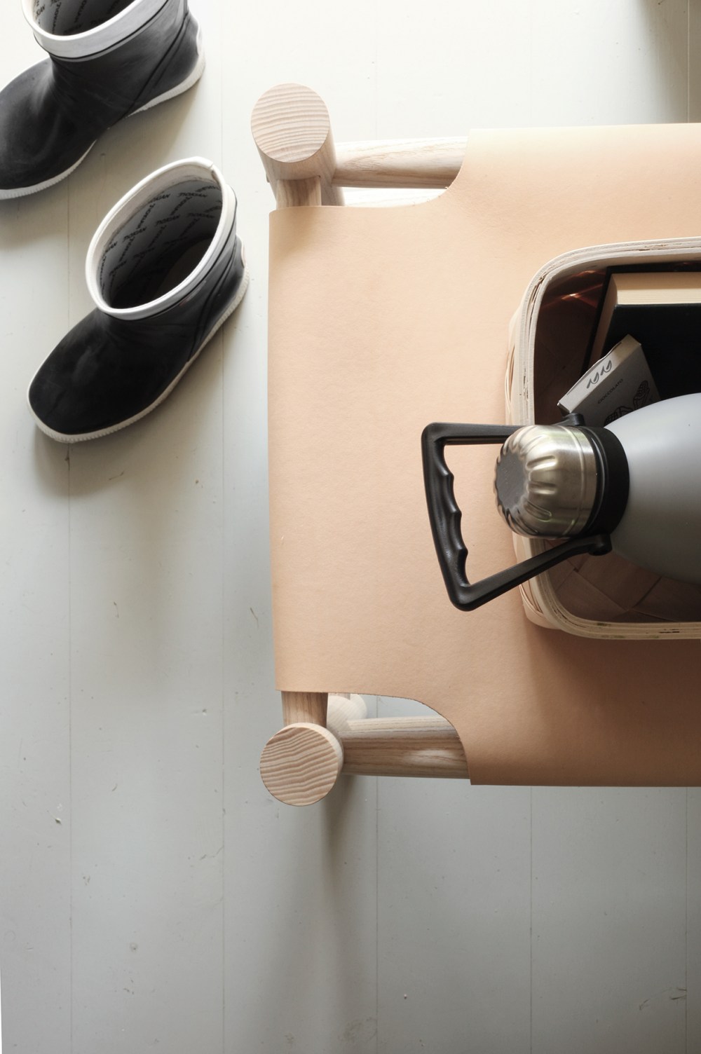 ’Odda’ on valmistettu parkitusta nahasta ja saarnesta Suomessa. Penkki kulkee kätevästi tuubipaketissa ja ostaja voi koota penkin helposti käsin ilman liimaa ja ruuveja.